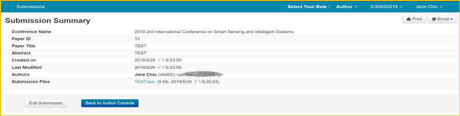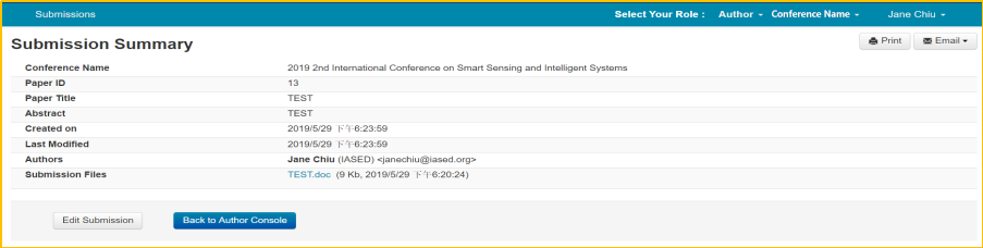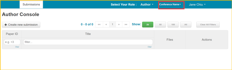 I. Then you will enter the“Author Console” page, click on “ Create new submission” button