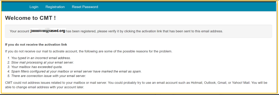 ---After clicking 'Register', the system will send an activation link to the mail address you filled. Please verify your account by clicking the activation link. If you didn't find the Email, there are some possible reasons for the problem, they are listed on the page as follows:
