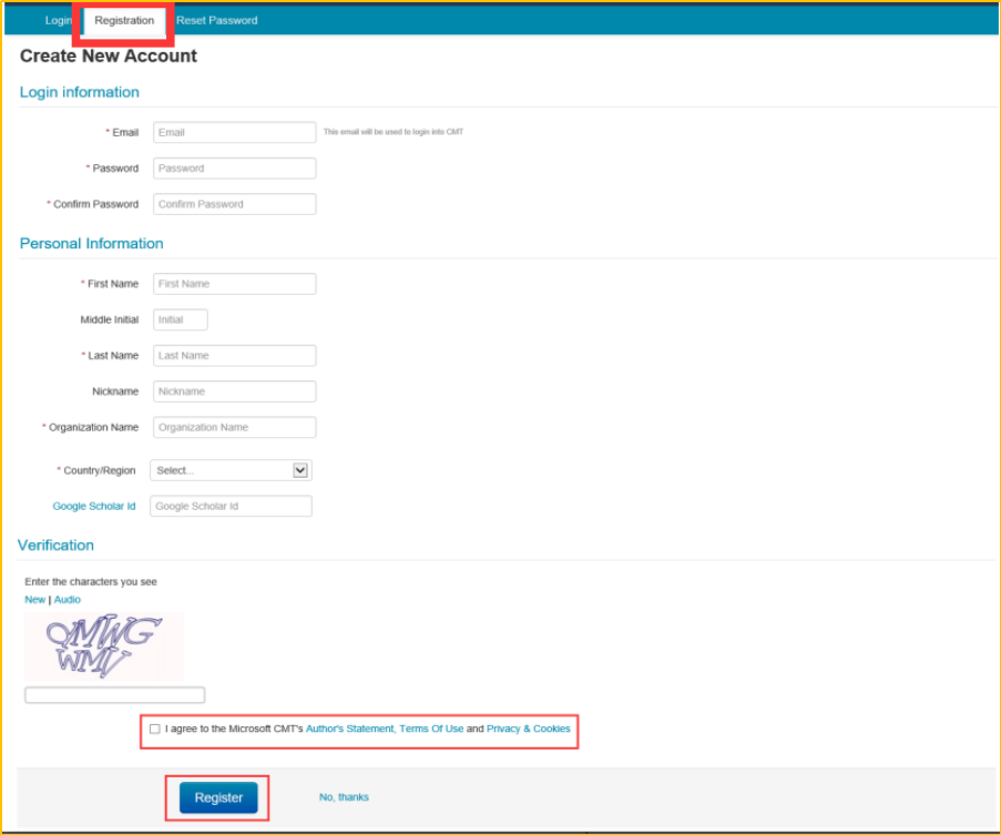 Note: This is a guideline for paper submission through our online submission system, CMT, this instruction will illustrate how to submit manuscripts for new and regular users of CMT. If you failed to submit your manuscript through CMT finally, please submit it via the conference email: mail@cstfm.org.